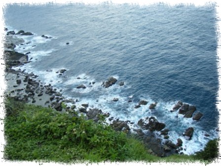 站在岸邊往下看~~就是高高的峭壁接連著海 還會聽到海浪拍打的聲音唷!