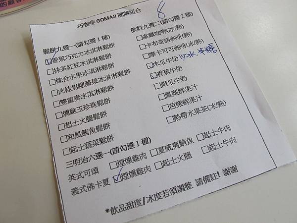 因為是用團購券,所以直接給了張單子,讓我們自已選