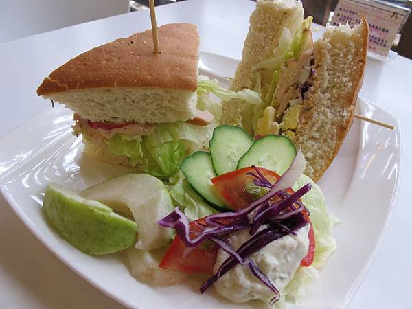 佛卡夏有烤的比較乾了一些,裡面的料很豐富,有雞肉、生菜還有蛋