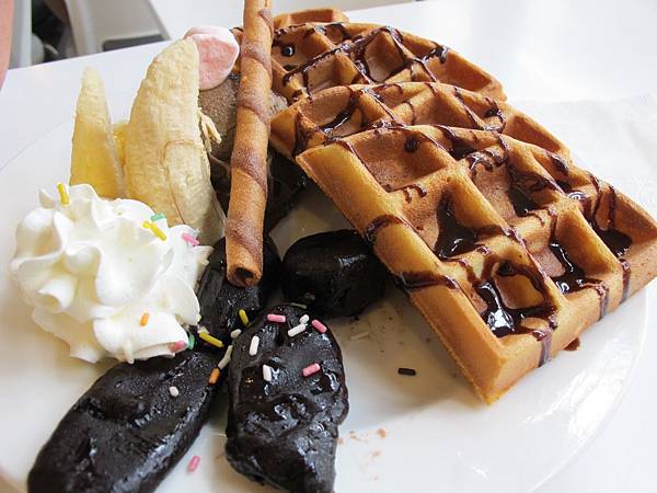 鬆餅烤的剛剛好,裡面也QQ的!南哥還蠻讚賞的咧~